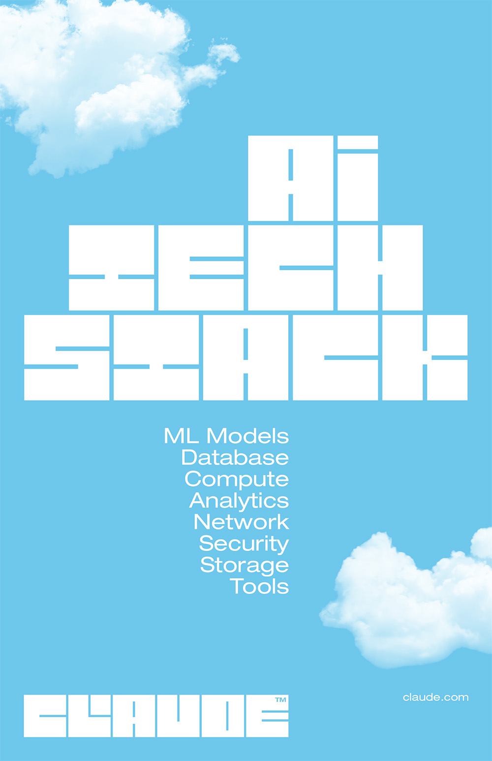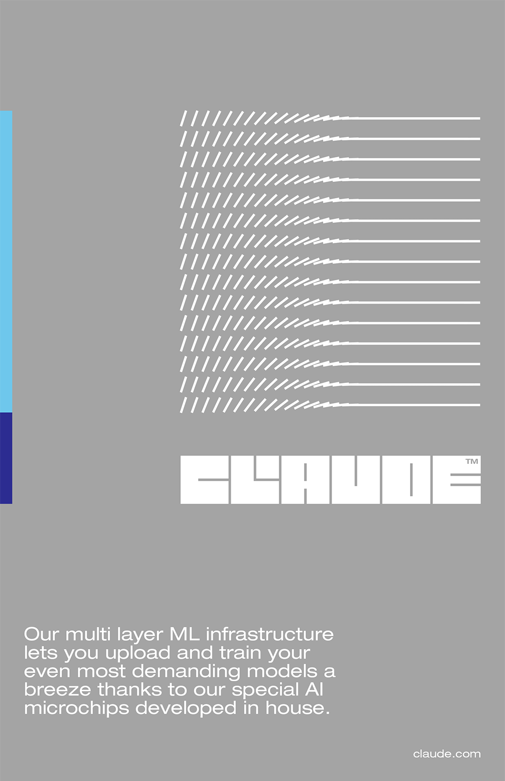 This is a personal project to polish my branding skills. I wanted to rebrand the cloud AI company Claude with a fresh design thinking. The branding uses a custom created typeface that represents information packets and the flow between them. It can be set as a regular text or as cloud shapes as depicted in the assets.