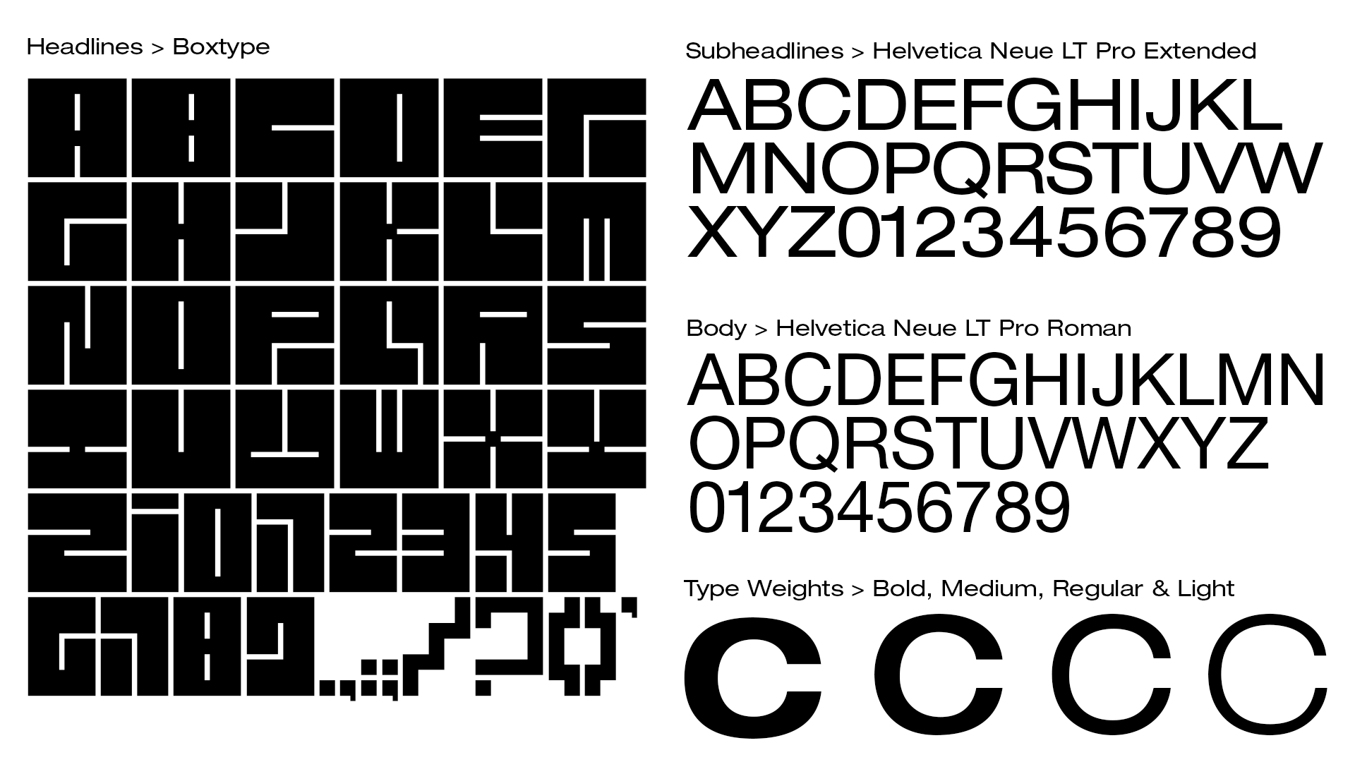 I have created a monospaced display typeface specifically for the brand. The square glyphs represent the information packets in information theory defined by Claude Shannon. The negative spaces inside them form the letters and when animated symbolize the information flow. Each glyph has vertical or horizontal motion depending on its main axis, but some letter that have both dominant axis have 4 different directional moves. The designer can choose between these alternatives to create a dynamic composition. The glyphs can also be used as a mask for images and videos.