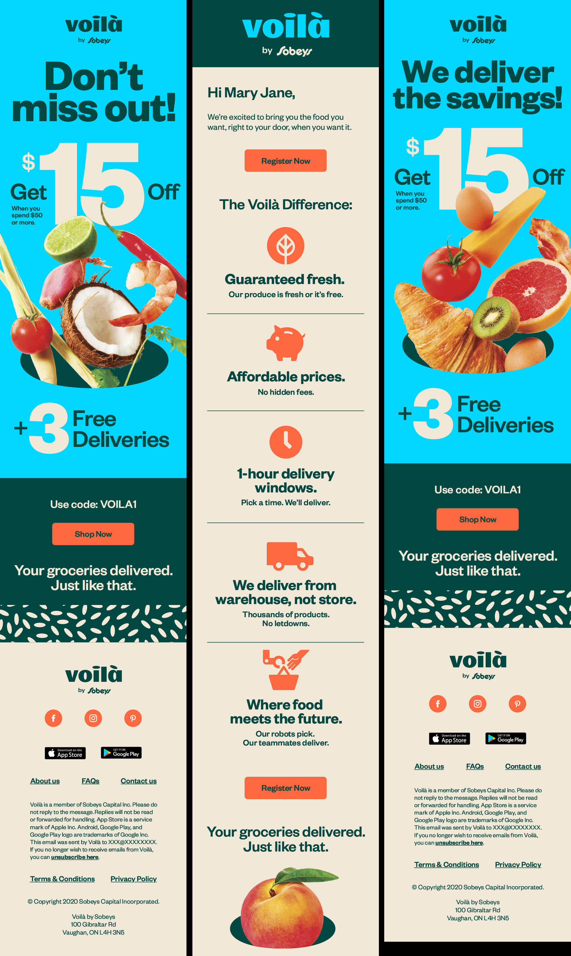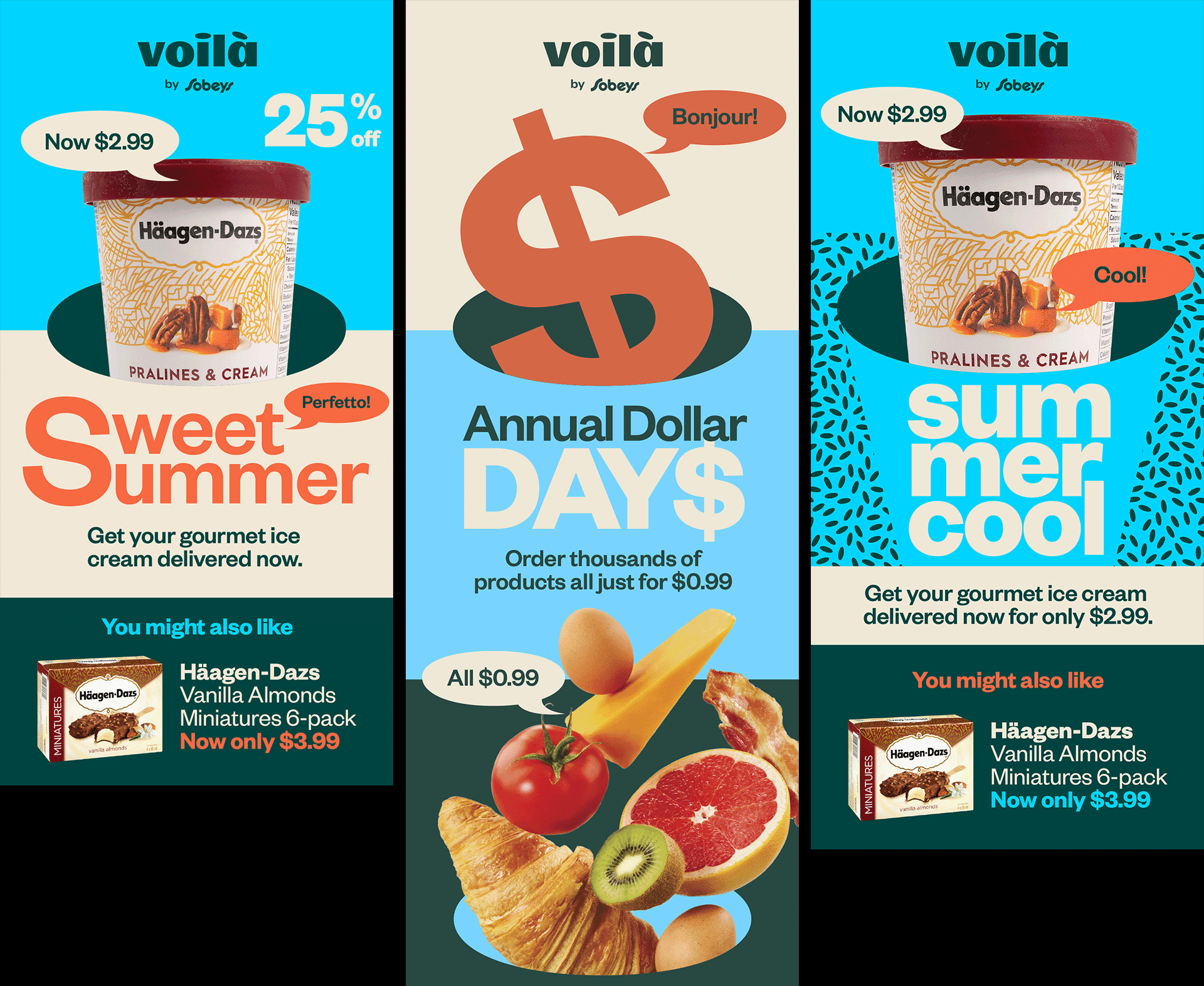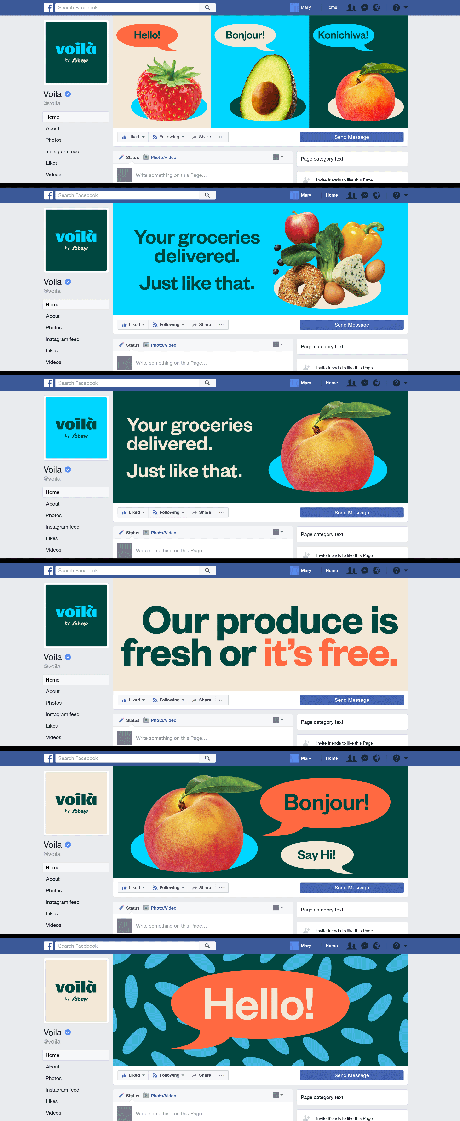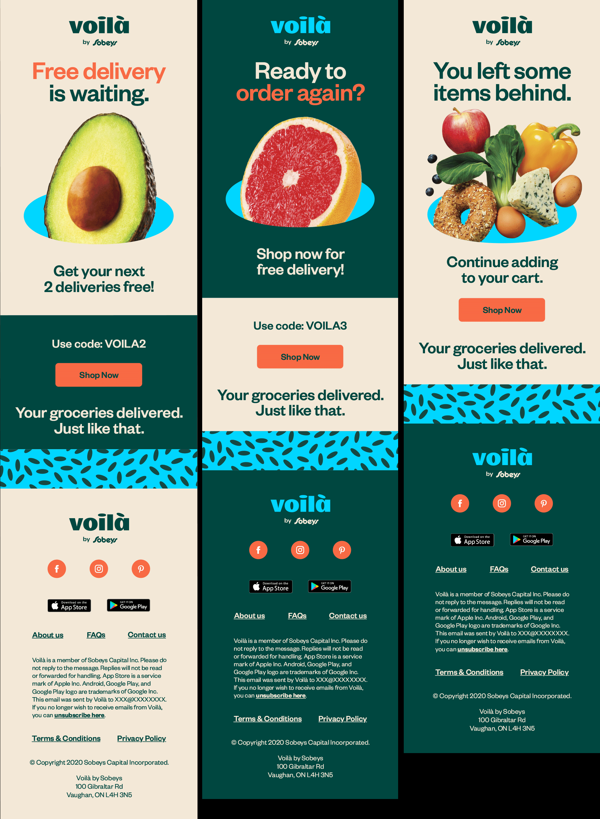 Voila is a new ecommerce grocery store brand created by Sobey's. They approached to Sid Lee to design everything from the ground-up. While the branding team worked on branding elements like the logo, typography, colors, etc. I created all of their digital assets including emails, facebook banners, webpages and some motion studies for their new logo.